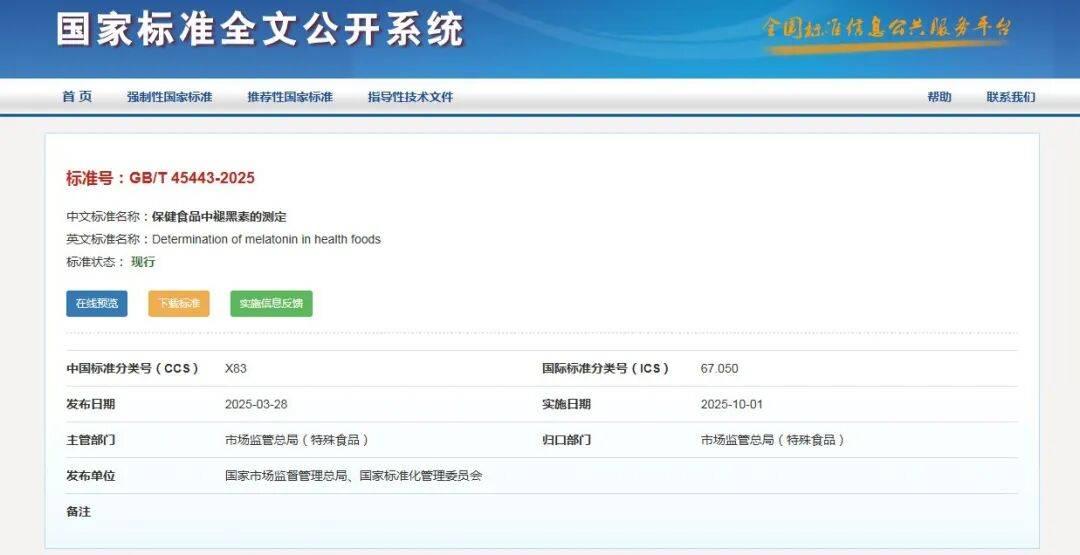 2025年10月1日起,《保健食品中褪黑素的测定》《保健食品中绿原酸的测定》《保健食品中甘草酸的测定》三项保健食...