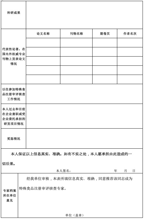 二、本人在参与注册审评核查工作期间,不与申报单位以及与申报单位有关的中介机构或人员进行可能影响工作公正性的接触,不利用职务之便获取不当利益。在参与特殊食品注册审评核查工作后,不接受上述单位或人员的邀请,参与被审评核查特殊食品的后续注册相关工作,获取不当利益。