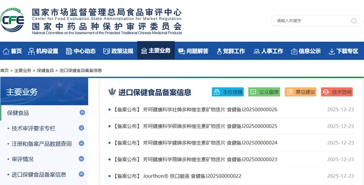 新增5款!进口保健食品备案再添新丁2025年12月23日,国家市场监督管理总局食品审评中心发布了5款进口保健食品备案信息,具体产品信息如下。 Jourthon铁...